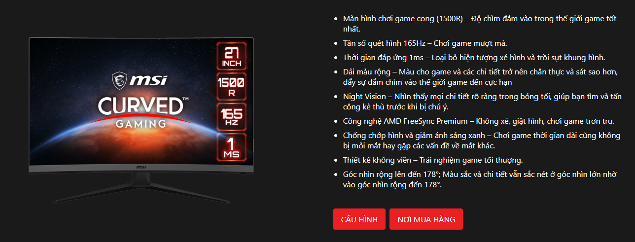 Màn hình MSI Optix G27C7 (27 inch/ 165Hz/ FHD/ Cong 1500R)