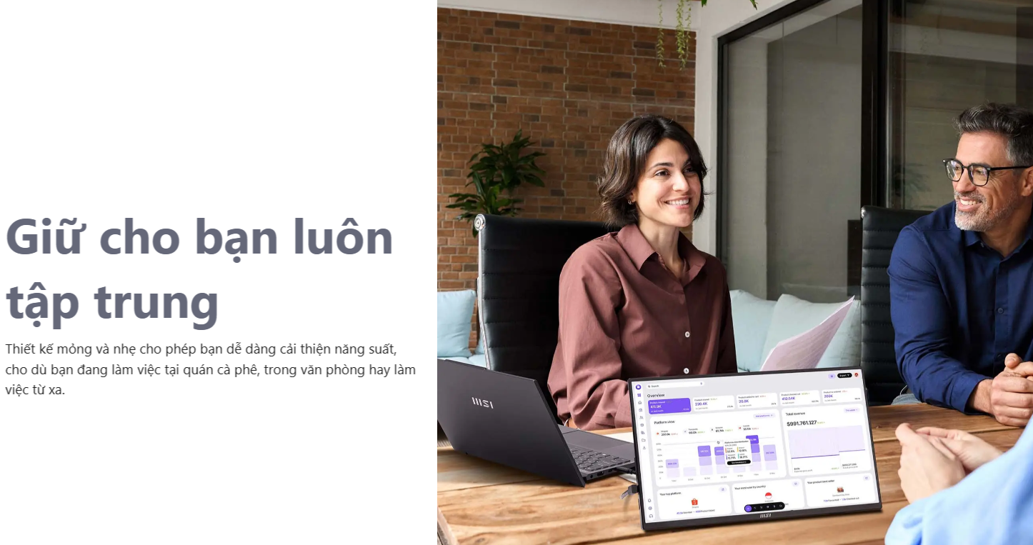 Màn hình di động MSI PRO MP165 E6 sử dụng tấm nền IPS chất lượng cao, mang lại độ sáng ổn định và màu sắc chính xác từ mọi góc nhìn lên đến 178 độ. Điều này cực kỳ quan trọng khi bạn chia sẻ nội dung trong các buổi họp nhóm hoặc thuyết trình trực tiếp với khách hàng tại bất kỳ không gian nào.