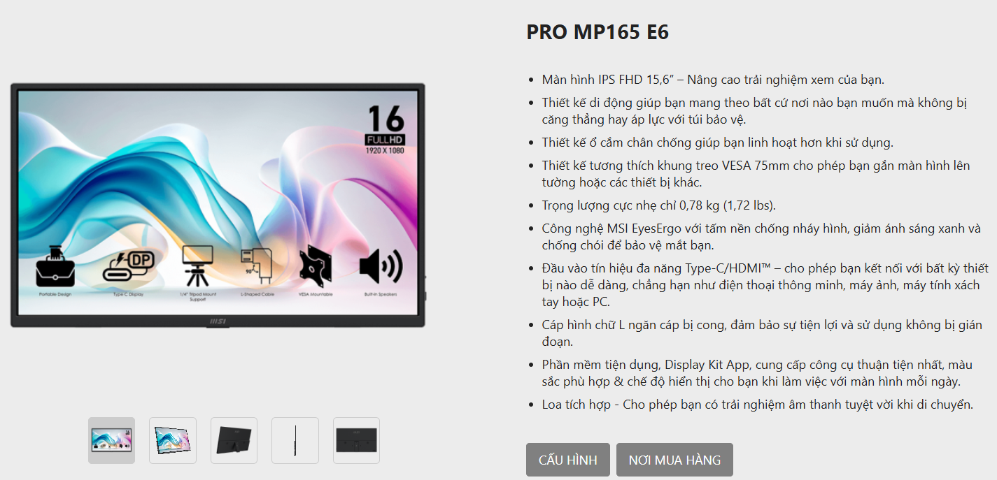 Màn hình MSI PRO MP165 E6 (15.6 inch/FHD/IPS) - Màn hình di động