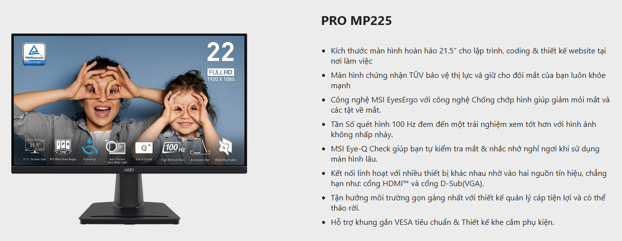Màn hình MSI PRO MP225 (21.5 inch/100Hz/FHD/IPS/Loa)