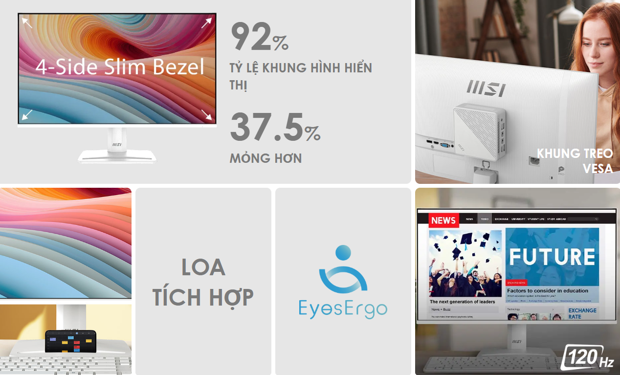 Tính năng: EyesErgo, MSI Display Kit, Khe cắm điện thoại, VESA 100x100mm