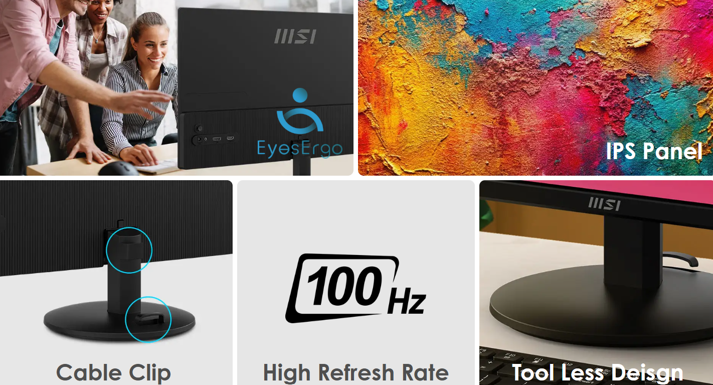 Với kích thước lớn 27 inch, MSI PRO MP272L cung cấp diện tích hiển thị vượt trội, giúp các văn bản, bảng tính và hình ảnh trở nên rõ ràng, dễ quan sát hơn. Đây là kích thước lý tưởng để bạn làm việc với nhiều ứng dụng cùng lúc mà không cảm thấy gò bó, giúp tăng đáng kể năng suất lao động.