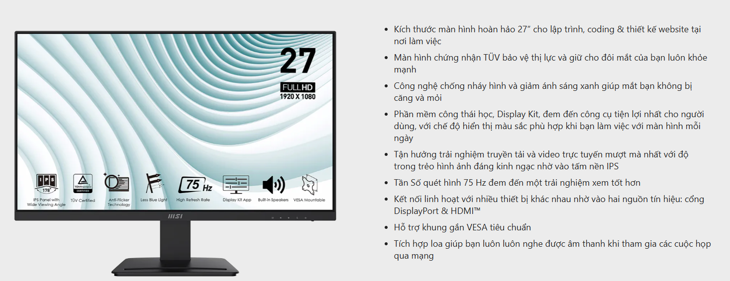 Màn hình MSI PRO MP273 (27 inch/75Hz/FHD/IPS/Loa/Vesa)