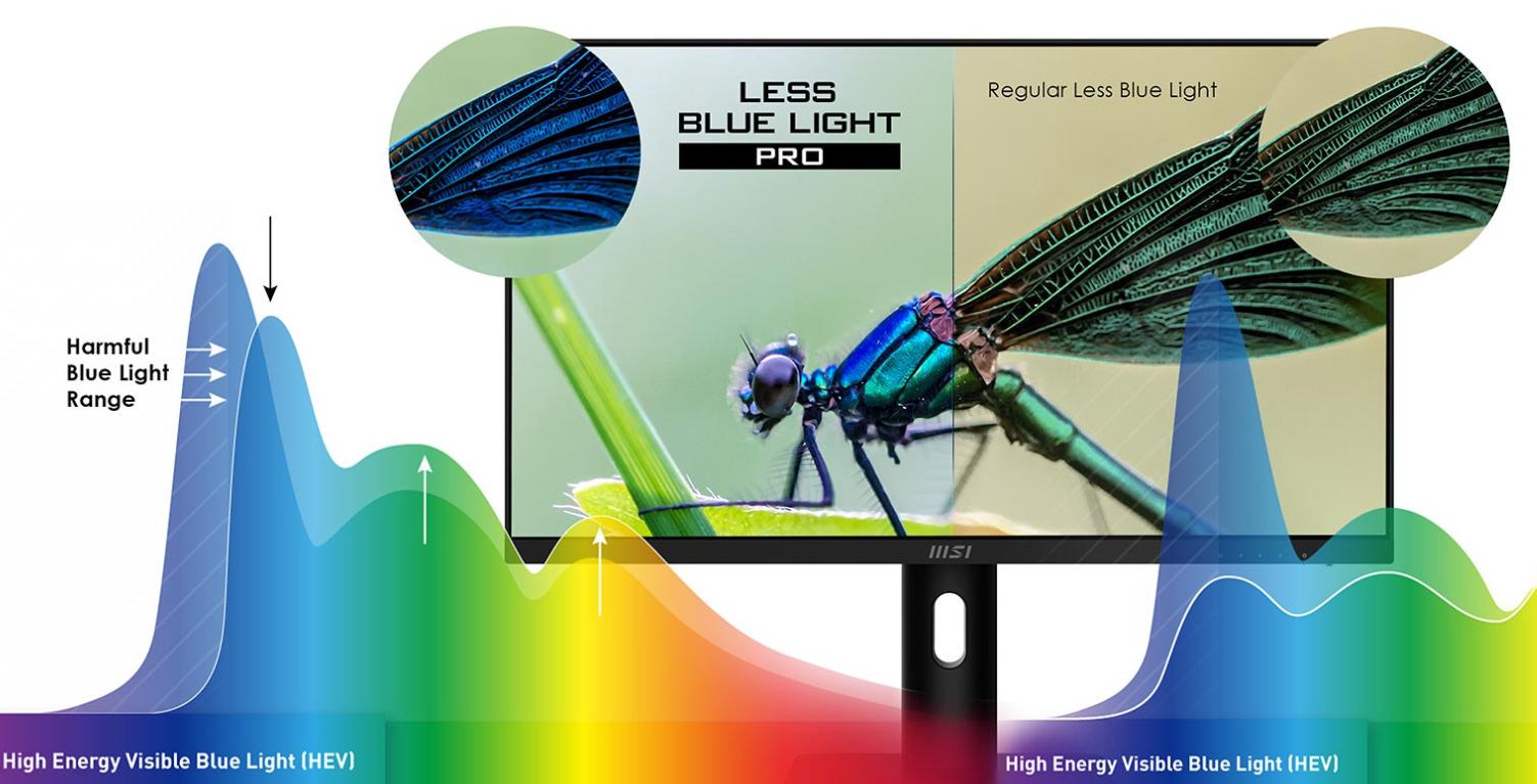 Sản phẩm tích hợp bộ giải pháp chăm sóc mắt chuyên sâu đạt chứng chỉ TÜV: Chống nhấp nháy (Anti-Flicker), giảm ánh sáng xanh và lớp phủ chống chói (Anti-Glare). Các công nghệ này phối hợp nhịp nhàng để loại bỏ tình trạng khô mắt và mỏi thị giác khi phải nhìn màn hình liên tục 8-10 tiếng mỗi ngày.