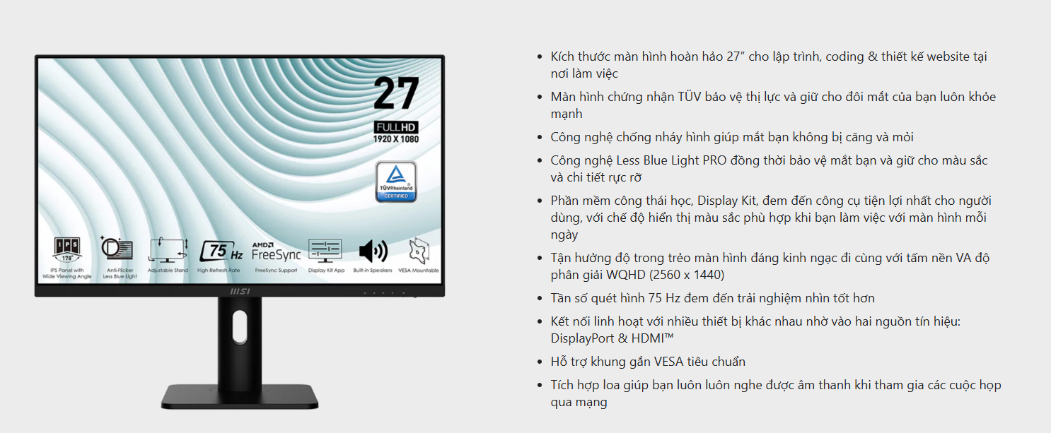 Màn hình MSI PRO MP273P (27 inch/75Hz/WQHD/IPS/Loa)