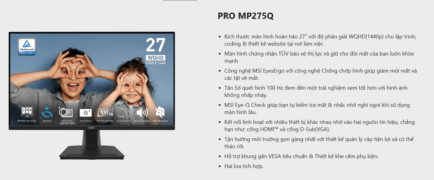 Màn hình MSI PRO MP275Q (27 inch/100Hz/QHD/IPS/Loa)