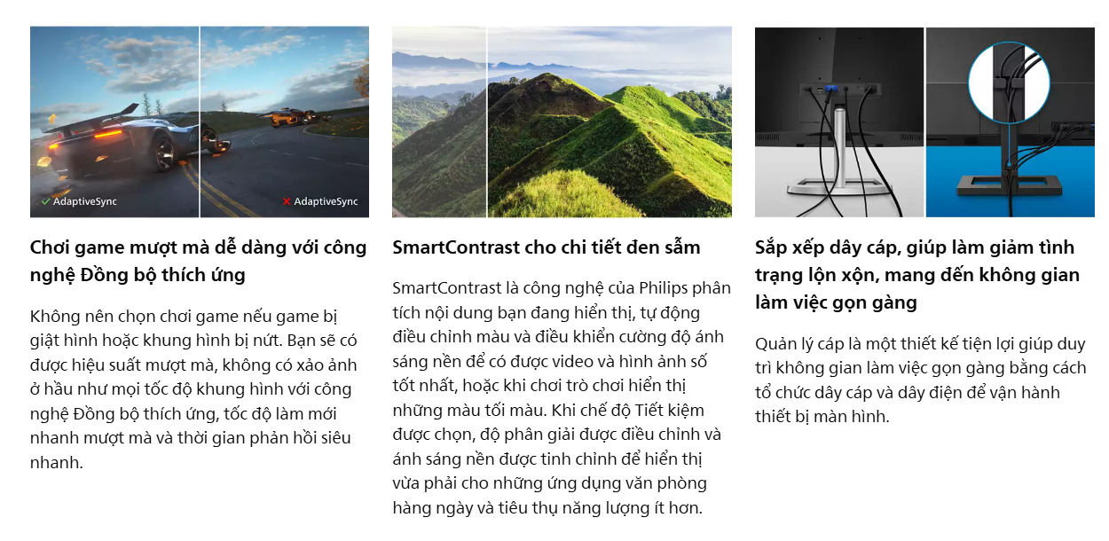 Tính năng: Chế độ Game SmartImage, Adaptive Sync, LowBlue Mode.