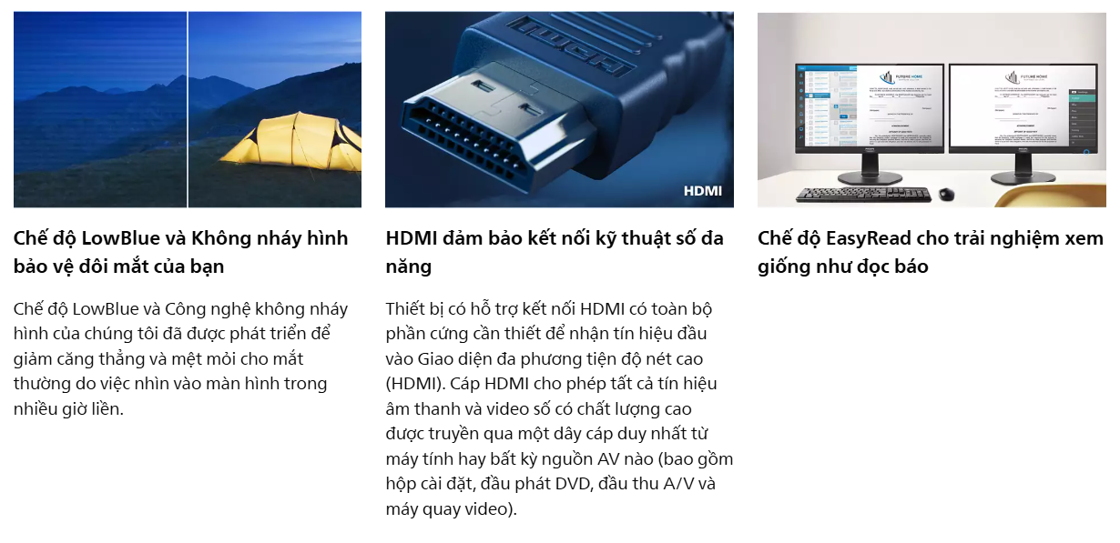 Màn hình Philips 24E2N1100/74 sở hữu thiết kế khung viền siêu mỏng, giúp tối ưu diện tích hiển thị và dễ dàng thiết lập hệ thống nhiều màn hình cạnh nhau. Bên cạnh đó, các công nghệ như LowBlue Mode và Flicker-Free được tích hợp sẵn trên Philips 24E2N1100/74 giúp giảm thiểu tình trạng đau mỏi mắt, bảo vệ thị lực tối đa khi bạn phải làm việc cường độ cao.