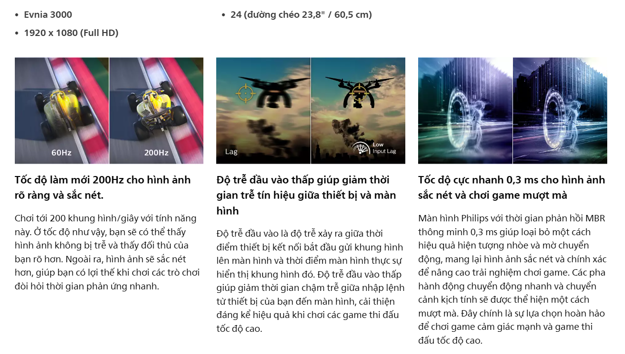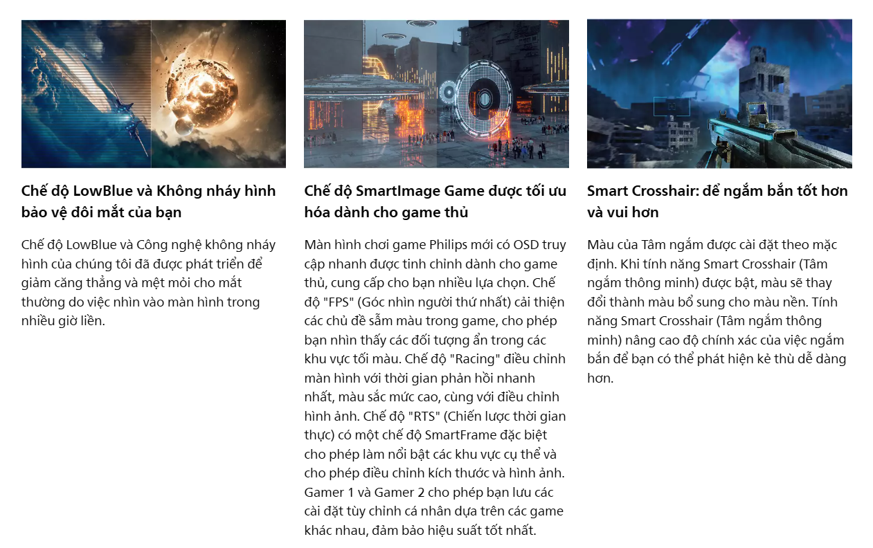 Công nghệ: HDR Ready, Adaptive-Sync, SmartImage Game, LowBlue Mode.