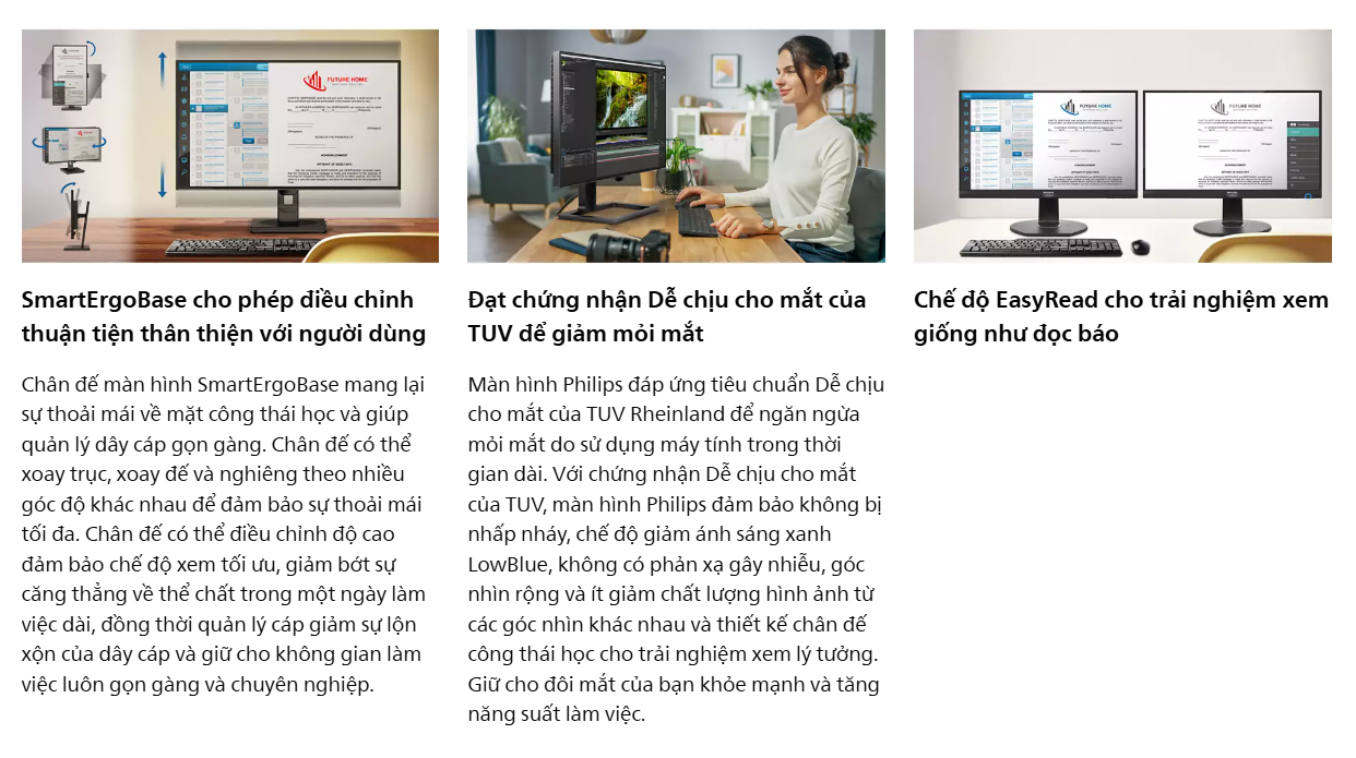Sở hữu tấm nền IPS tiên tiến, màn hình Philips 27B1N3800/00 tái tạo màu sắc rực rỡ và chân thực với góc nhìn rộng 178/178 độ. Công nghệ này đảm bảo hình ảnh trên Philips 27B1N3800/00 luôn nhất quán, không bị biến đổi màu sắc dù bạn quan sát từ góc hẹp, rất phù hợp cho các tác vụ đòi hỏi sự chuẩn xác về dải màu như in ấn và thiết kế chuyên nghiệp.