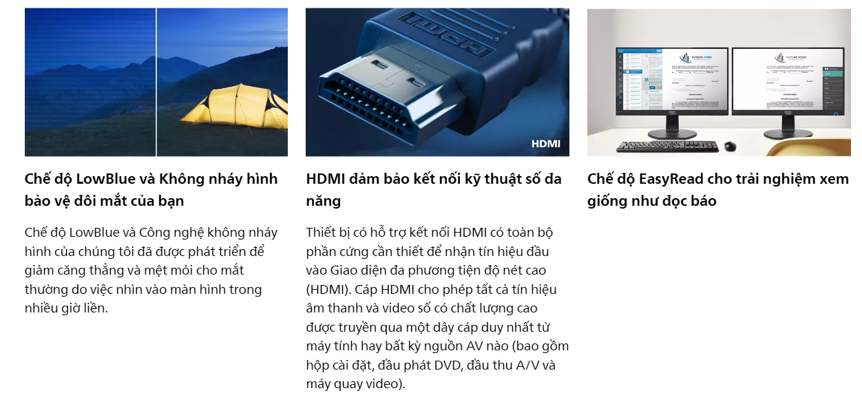 Thiết kế viền mỏng và bảo vệ mắt tối ưu