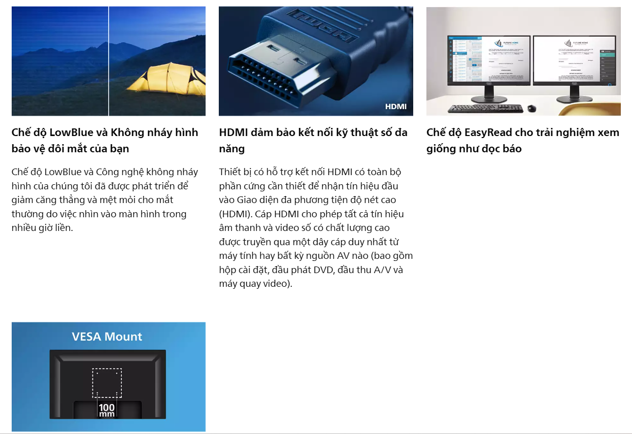 Màn hình Philips 27E2N1500/74 sử dụng tấm nền IPS cao cấp cho góc nhìn rộng 178 độ cùng khả năng tái tạo màu sắc trung thực nhất. Để bảo vệ sức khỏe người dùng, Philips 27E2N1500/74 tích hợp sẵn chế độ LowBlue giảm ánh sáng xanh và công nghệ Flicker-Free chống nhấp nháy, giúp bạn làm việc cường độ cao trong nhiều giờ mà vẫn giữ cho đôi mắt luôn thoải mái.
