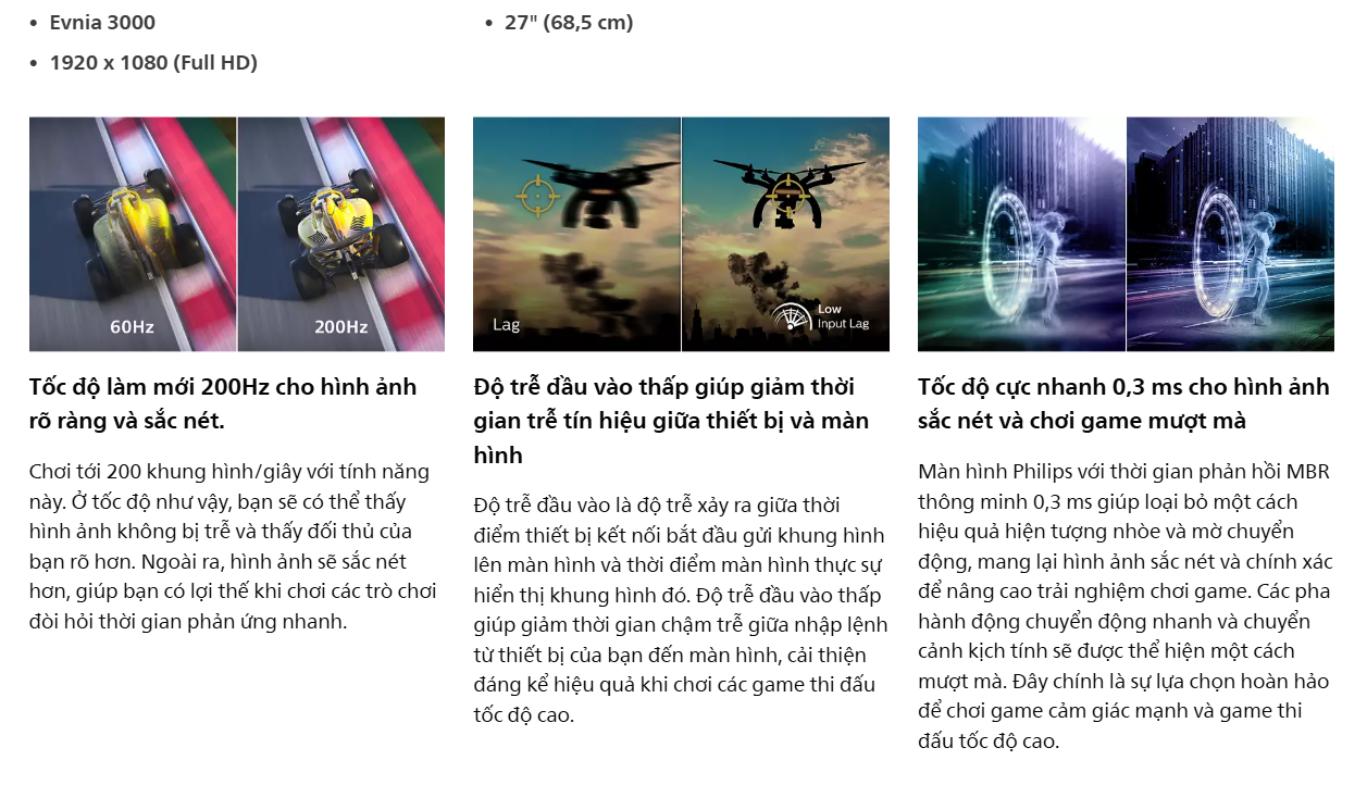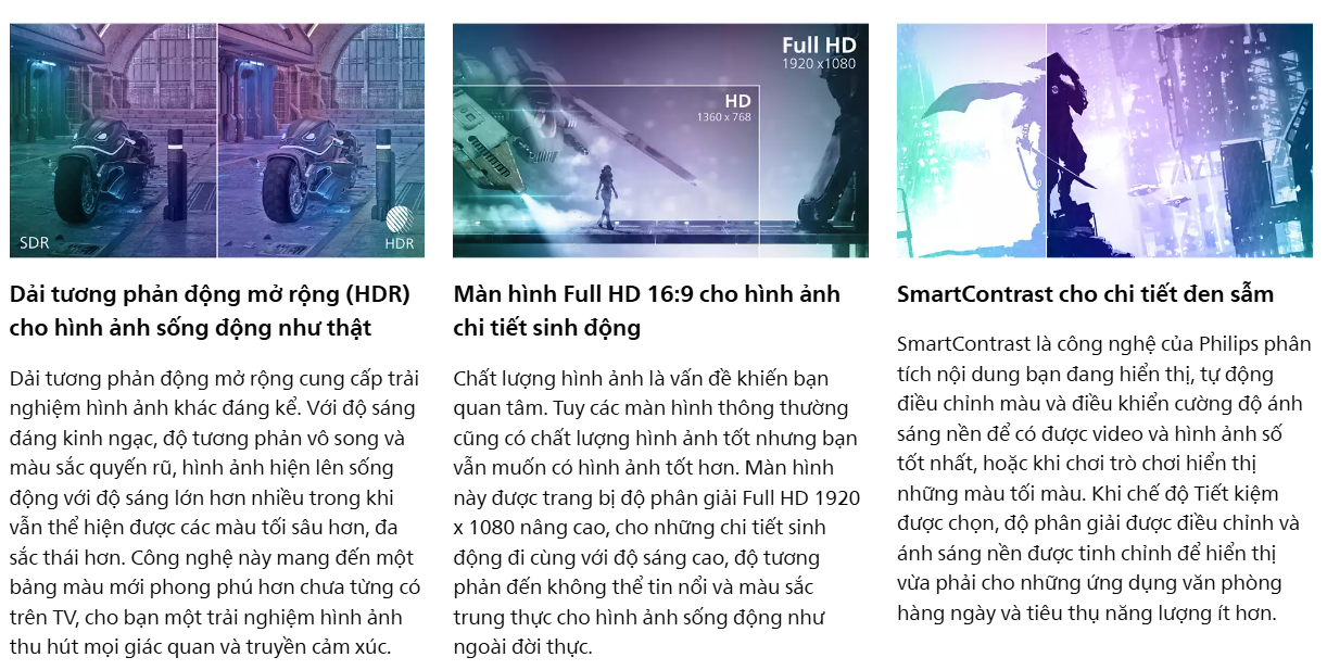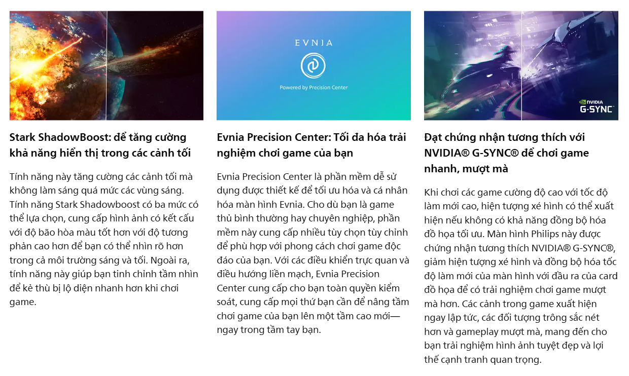 Tính năng: HDR Ready, Adaptive-Sync, SmartImage Game, Low Input Lag.