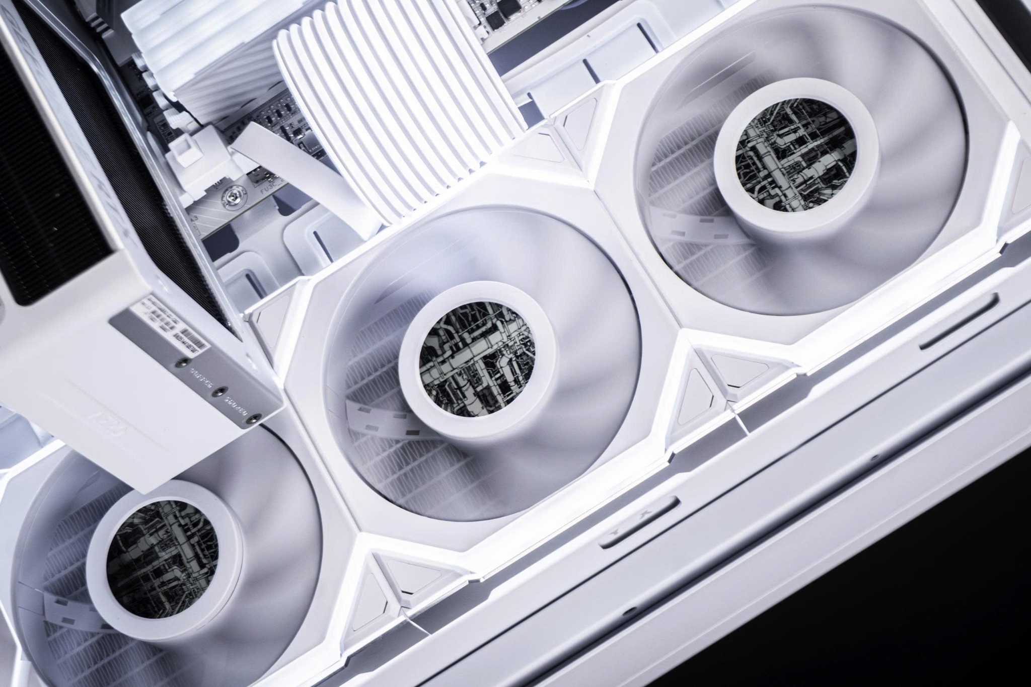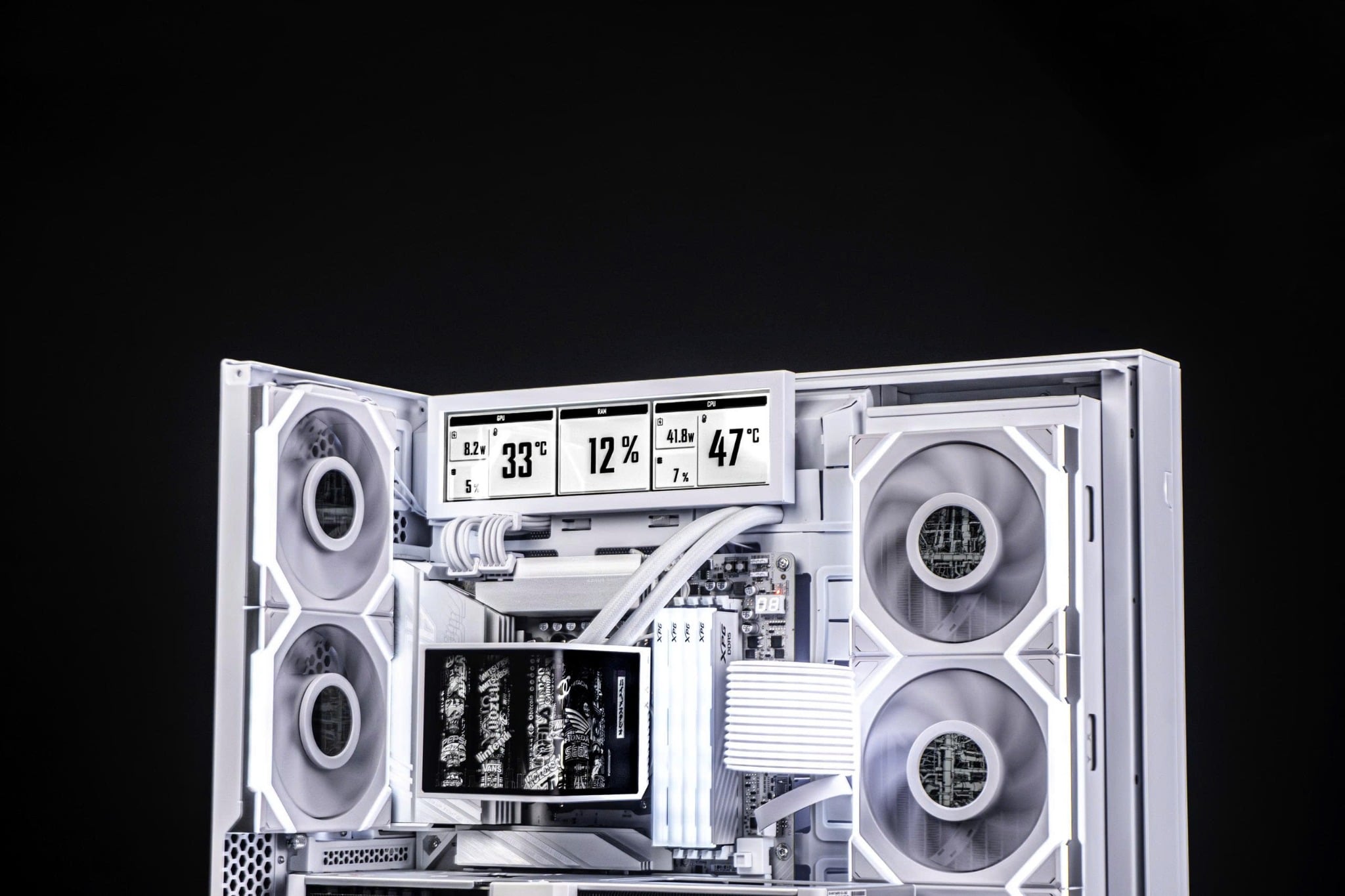 - Hệ Sinh Thái LCD Cá Nhân Hóa Toàn Diện Cỗ máy "Blanc" không chỉ đẹp tĩnh mà còn sống động. Dàn 7 quạt không dây LIAN LI UNI FAN SL LCD (cả bản thường và Reverse Blade) và tản nhiệt AIO TRYX PANORAMA 360 SE đều được trang bị màn hình LCD. Cùng với màn hình đa năng Lian Li 8.8 Universal Screen độc đáo, bạn có toàn quyền tùy biến hiển thị thông số hệ thống, ảnh GIF, video hoặc logo cá nhân, tạo ra một cỗ máy "không đụng hàng" mang đậm dấu ấn của riêng bạn.