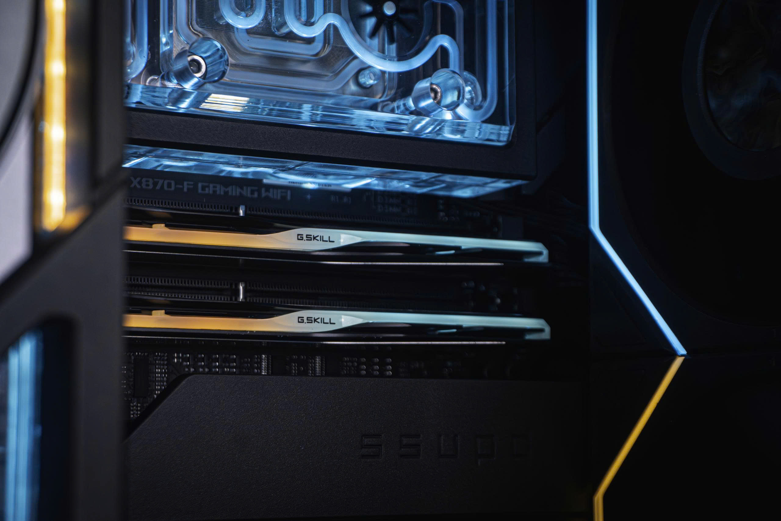 Bộ nhớ RAM Gskill Trident Z5 Neo 64GB DDR5 6000MHz tốc độ cao đáp ứng hoàn hảo nhu cầu đa nhiệm, livestream và sáng tạo nội dung nặng. Với tổng cộng 3TB SSD Samsung 990 Pro Gen4, hệ thống đảm bảo tốc độ tải và truy xuất dữ liệu cực nhanh.