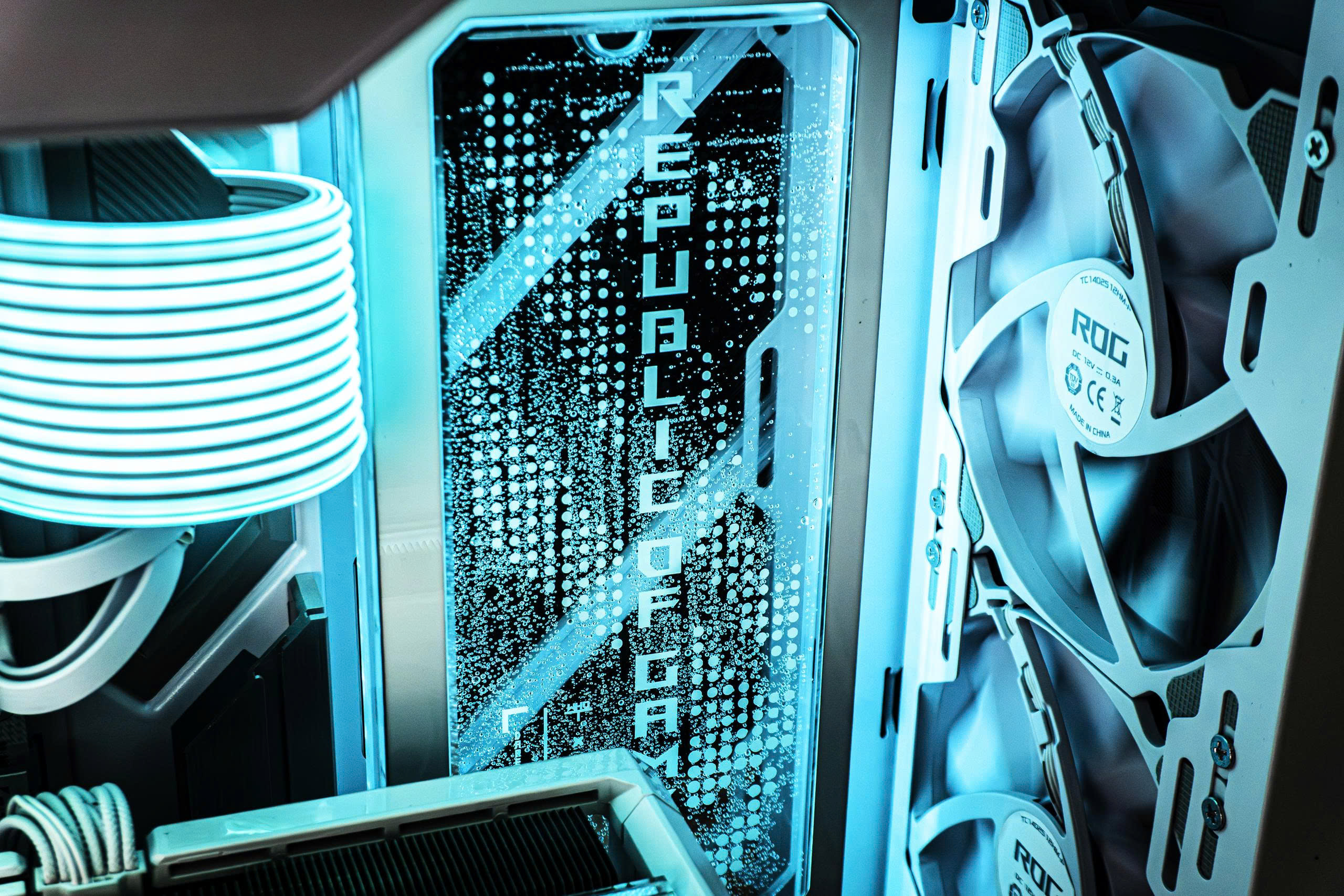 Khác biệt với các dòng tản nhiệt AIO thông thường, ROG Iceborne sử dụng hệ thống Tản nhiệt nước Custom Stealth Tubing. Các đường ống nước được Modding Cafe tính toán tỉ mỉ, đi ống tinh xảo giúp tối ưu hóa không gian và làm nổi bật các linh kiện bên trong. Tấm Distro Plate dành riêng cho case Hyperion tích hợp logo ROG rực rỡ, vừa là bình chứa nước vừa là điểm nhấn thẩm mỹ khó rời mắt.