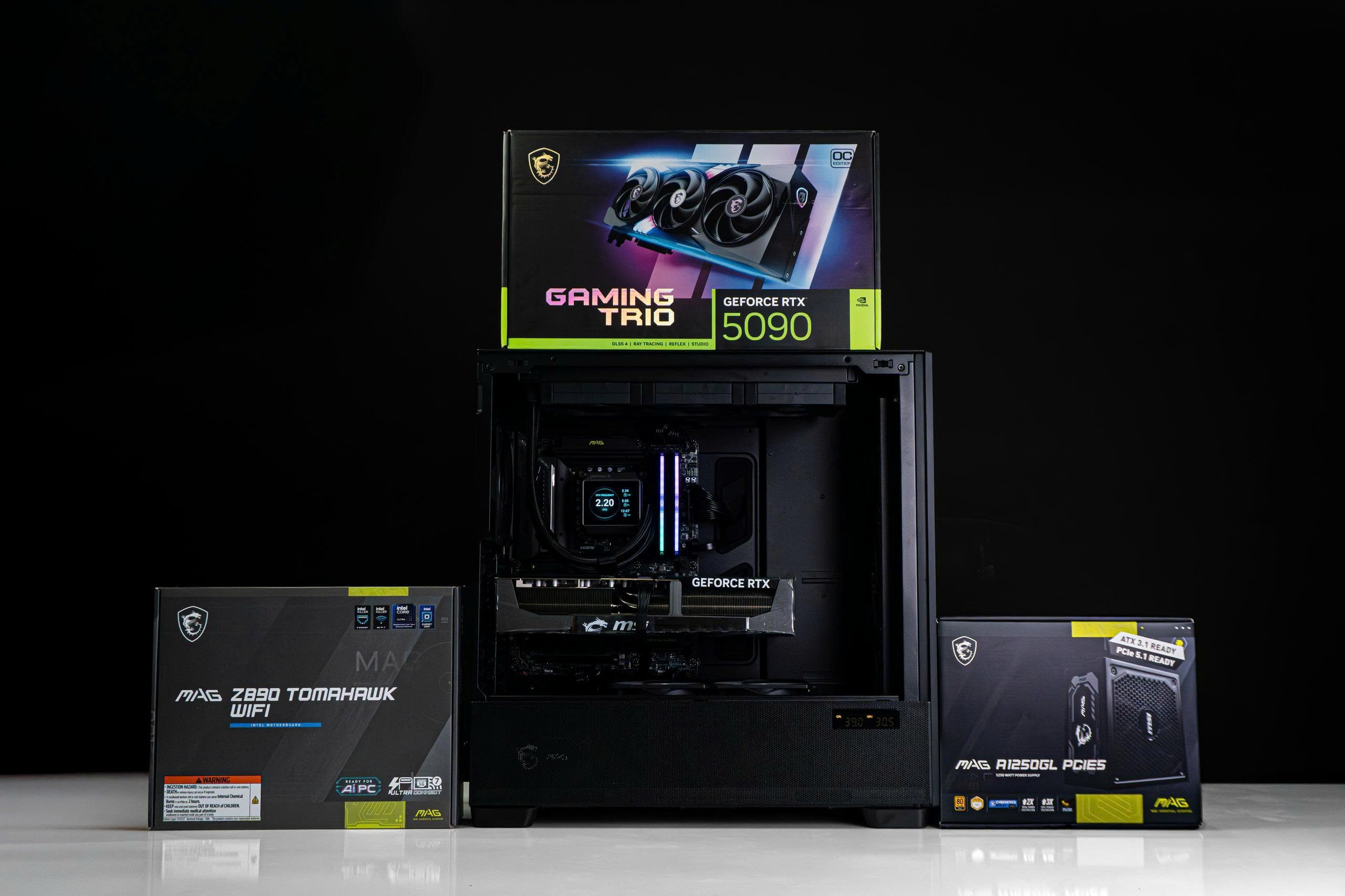 - Nền Tảng Vững Chắc & Tản Nhiệt Tối Ưu Để thuần hóa "quái vật", The Behemoth được xây dựng trên một nền tảng vững chắc và hệ thống tản nhiệt được tính toán kỹ lưỡng. Sự đồng bộ giữa bo mạch chủ, card đồ họa và nguồn từ MSI đảm bảo sự tương thích và ổn định ở mức cao nhất. Bộ nguồn MSI MAG A1250GL 1250W Gold chuẩn ATX 3.0 cung cấp dòng điện sạch và dồi dào, sẵn sàng cho những pha ép xung đỉnh cao. Toàn bộ nhiệt lượng tỏa ra từ CPU Ultra 9 285K được kiểm soát bởi tản nhiệt nước AIO Deepcool Mystique 360, kết hợp với luồng gió tối ưu của case ANTEC FLUX PRO, đảm bảo hệ thống luôn hoạt động mát mẻ, ổn định ngay cả khi đang chinh chiến ở mức hiệu năng cao nhất.