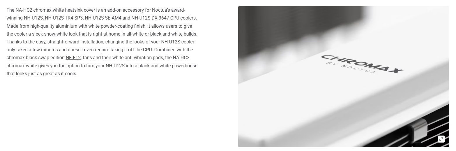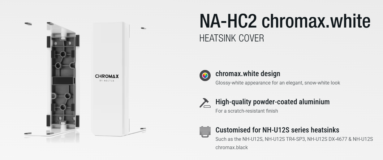 Khi kết hợp nắp NA-HC2 Chromax.white cùng với quạt NF-F12 Chromax.black.swap và các miếng đệm chống rung màu trắng, bạn sẽ có một bộ combo tản nhiệt khí đẹp mắt nhất trên thị trường hiện nay.