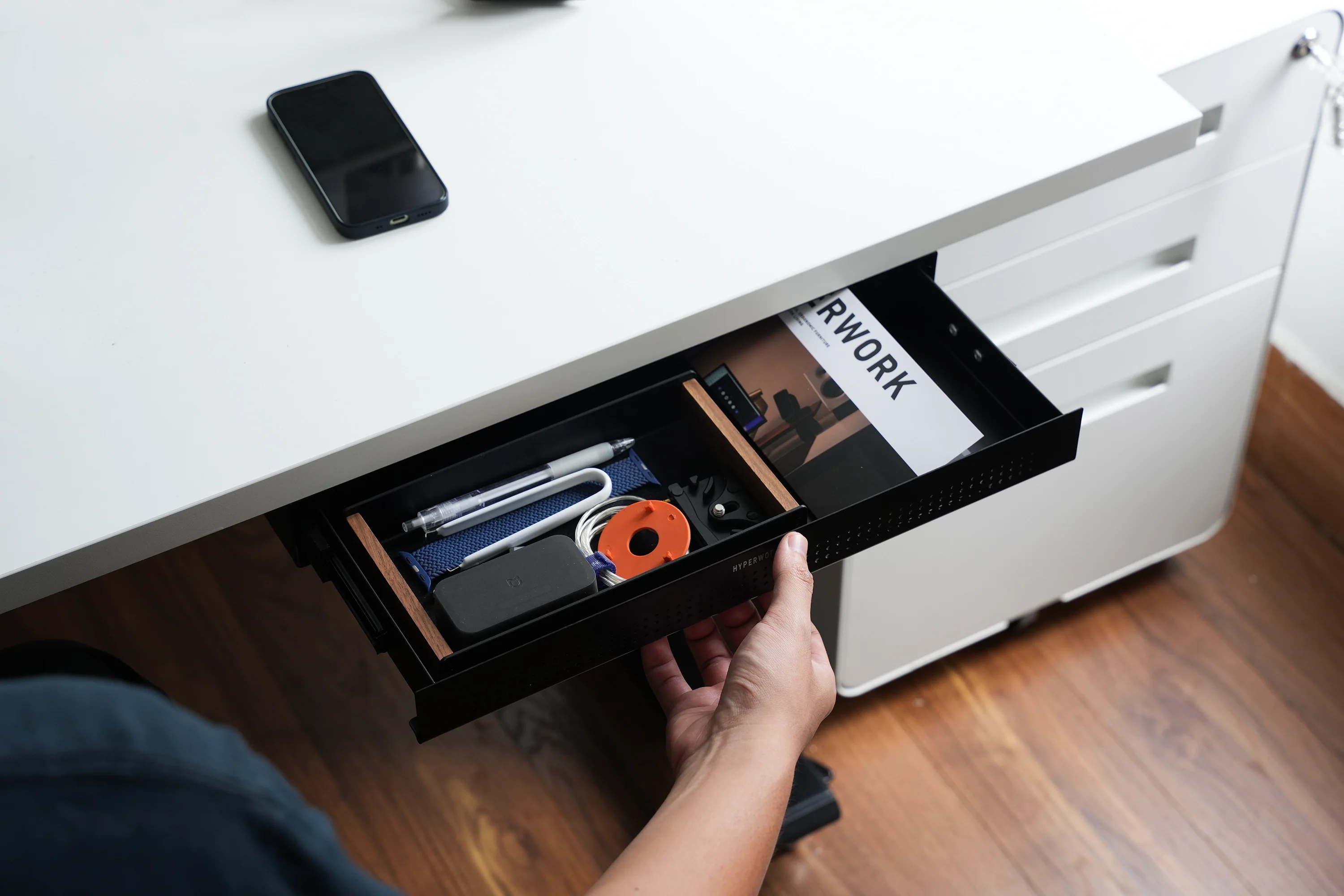 Ngăn kéo gắn bàn HyperWork Steel Drawer mang đến sự linh hoạt và tiện lợi cho không gian làm việc của bạn. Tìm hiểu ngay tại BP STORE!