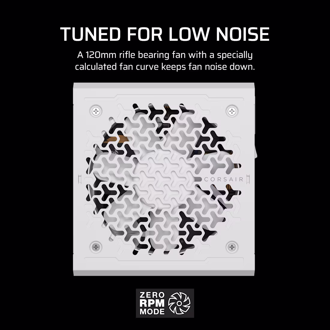 Hoạt động siêu êm với Zero RPM Mode: Với chế độ Zero RPM, quạt làm mát chỉ quay khi nguồn đạt đến một ngưỡng tải nhất định, giúp duy trì sự im lặng tuyệt đối khi hệ thống hoạt động ở mức tải thấp. Khi tải cao, quạt sẽ hoạt động để giữ nhiệt độ ổn định, nhưng vẫn đảm bảo độ ồn ở mức rất thấp (đạt chuẩn Cybenetics™ A-).