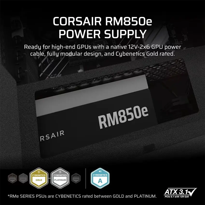 Hiệu suất Cybenetics™ Gold: Với chứng nhận Cybenetics™ Gold, RM850e đảm bảo hiệu suất hoạt động cao, giúp giảm lượng nhiệt tỏa ra và tiết kiệm điện năng. Đây là một trong những chuẩn hiệu suất khắt khe nhất hiện nay, phản ánh chất lượng linh kiện vượt trội của sản phẩm.