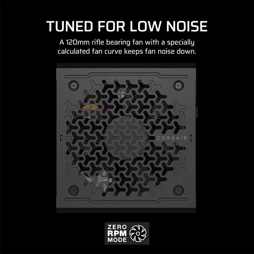 Hoạt động siêu êm với Zero RPM Mode: Với chế độ Zero RPM, quạt làm mát chỉ quay khi nguồn đạt đến một ngưỡng tải nhất định, giúp duy trì sự im lặng tuyệt đối khi hệ thống hoạt động ở mức tải thấp. Khi tải cao, quạt sẽ hoạt động để giữ nhiệt độ ổn định, nhưng vẫn đảm bảo độ ồn ở mức rất thấp (đạt chuẩn Cybenetics™ A).