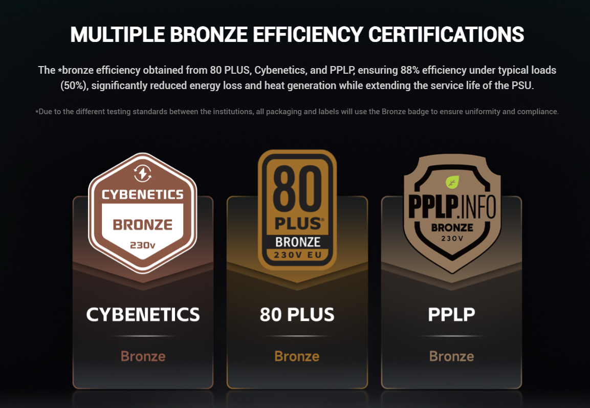 Chứng nhận 80 Plus Bronze hiệu suất cao