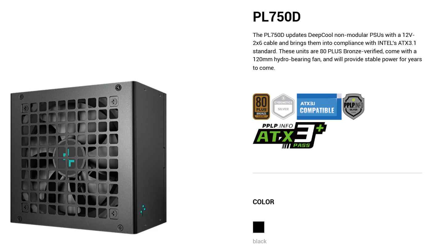 Nguồn máy tính DeepCool PL750D 750W là sự đầu tư xứng đáng cho bất kỳ hệ thống máy tính hiện đại nào. Với sự kết hợp giữa công suất 750W mạnh mẽ, chuẩn ATX 3.1 đột phá và độ bền bỉ đã được khẳng định, Nguồn máy tính DeepCool PL750D 750W sẽ cung cấp nguồn năng lượng dồi dào để bạn tự tin chinh phục mọi thử thách công nghệ.