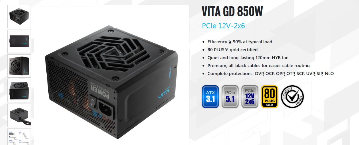 Nguồn máy tính FSP VITA GD 850W 80Plus Gold