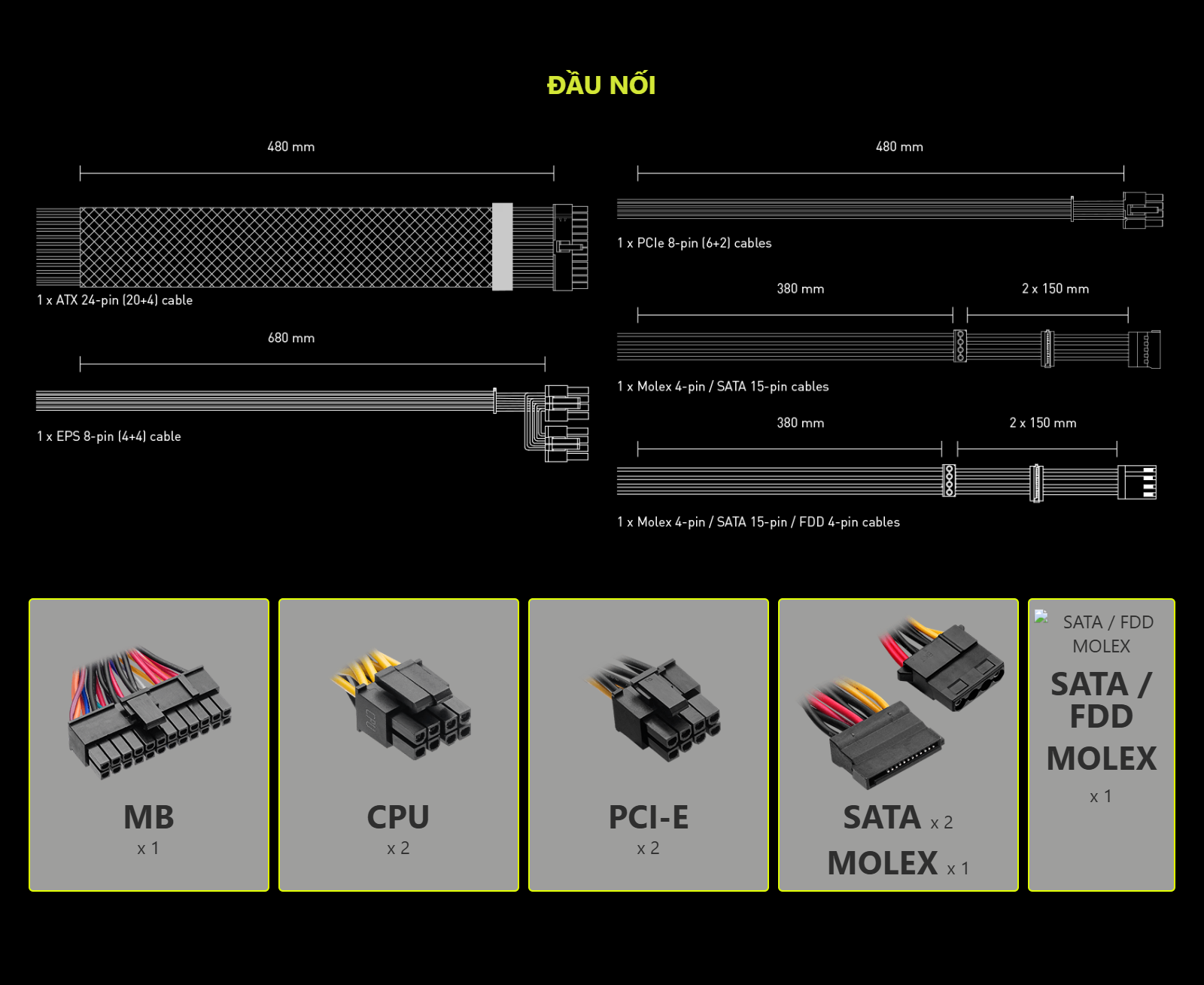Thiết kế: Non-Modular (Cáp cố định)
