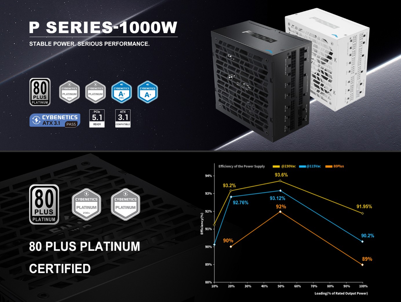 - Chứng nhận hiệu suất: 80 PLUS Platinum (>92%)