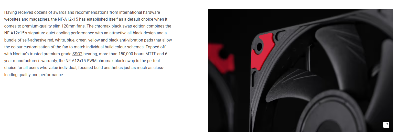 Độ dày chỉ 15mm giúp NF-A12x15 giải quyết triệt để các vấn đề về không gian. Nó cực kỳ hữu ích cho các vỏ case SFF (Small Form Factor) hoặc khi bạn cần lắp thêm quạt ở mặt hông case mà không muốn cấn vào card đồ họa hay tản nhiệt CPU khổng lồ.