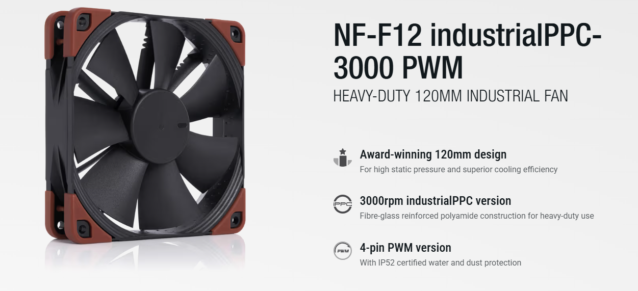 Với tốc độ quay gấp đôi so với các phiên bản thông thường, NF-F12 industrialPPC-3000 cung cấp áp suất tĩnh và lưu lượng gió vượt trội. Nó có thể đẩy luồng khí xuyên qua những bộ tản nhiệt nước (Radiator) dày nhất hoặc những thùng máy bị bí khí nhất một cách dễ dàng.