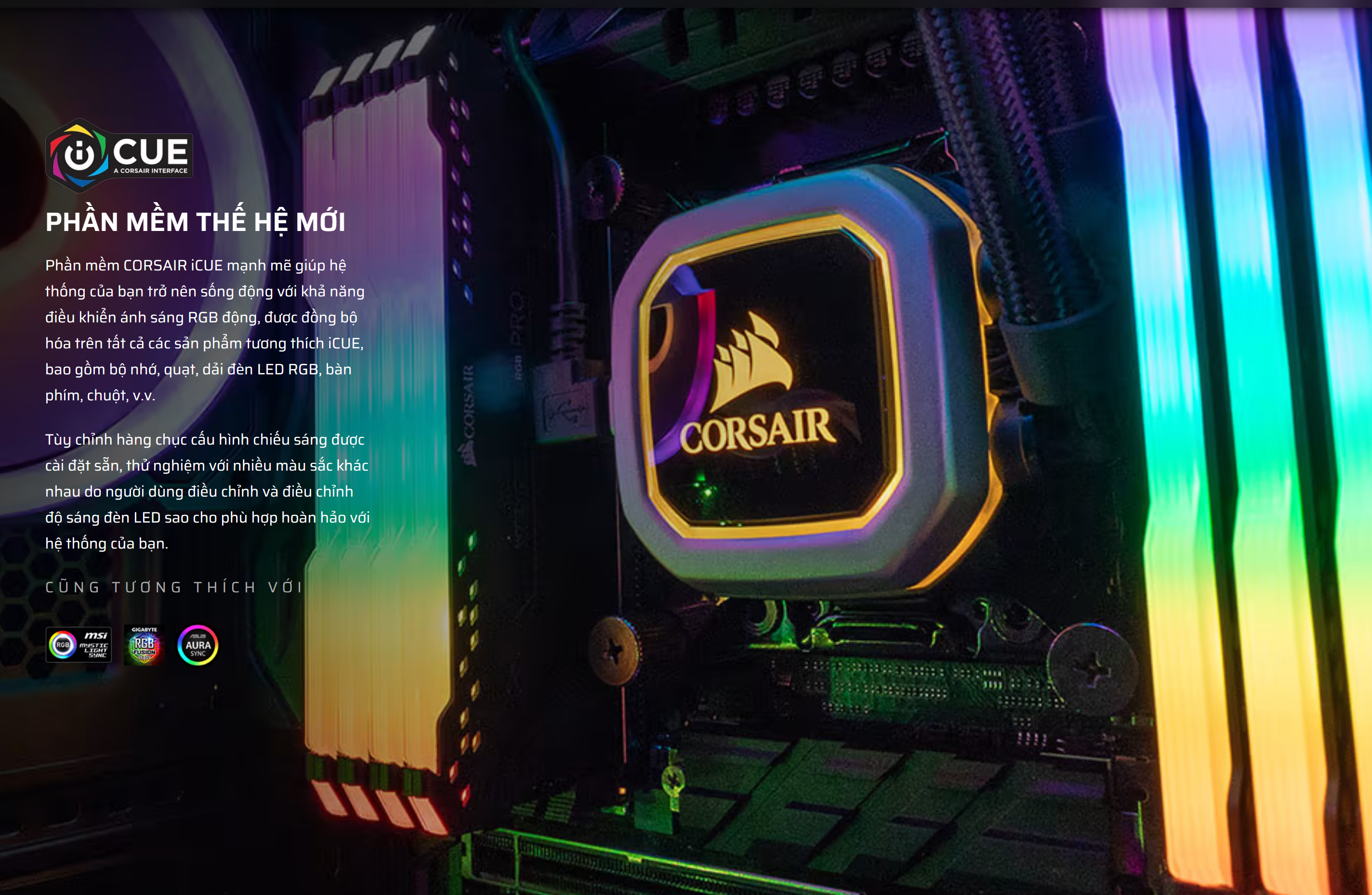 Ánh sáng RGB đa vùng sống động: Điểm nhấn của sản phẩm là hệ thống LED RGB đa vùng (Dynamic MultiZone). Bạn có thể tùy chỉnh từng khu vực LED để tạo ra các hiệu ứng ánh sáng độc đáo và đồng bộ hóa chúng với các linh kiện CORSAIR khác thông qua phần mềm iCUE, tạo nên một không gian PC rực rỡ và cá tính.