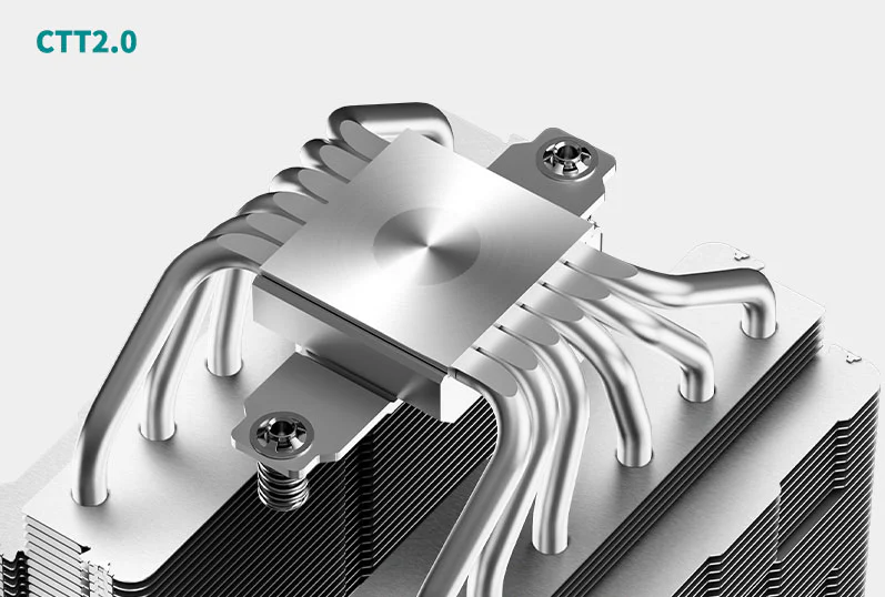 Hiệu suất làm mát mạnh mẽ: AG620 ARGB sở hữu cấu trúc tản nhiệt tháp đôi với 6 ống dẫn nhiệt ($ \emptyset $6mm) bằng đồng, giúp truyền nhiệt từ CPU lên các lá tản nhiệt một cách nhanh chóng và hiệu quả. Sản phẩm đi kèm hai quạt 120mm với tốc độ quay lên đến 1850 RPM, tạo ra lưu lượng gió 67.88 CFM và áp suất tĩnh 2.04 mmAq, đảm bảo hiệu suất tản nhiệt ổn định cho các CPU cao cấp.