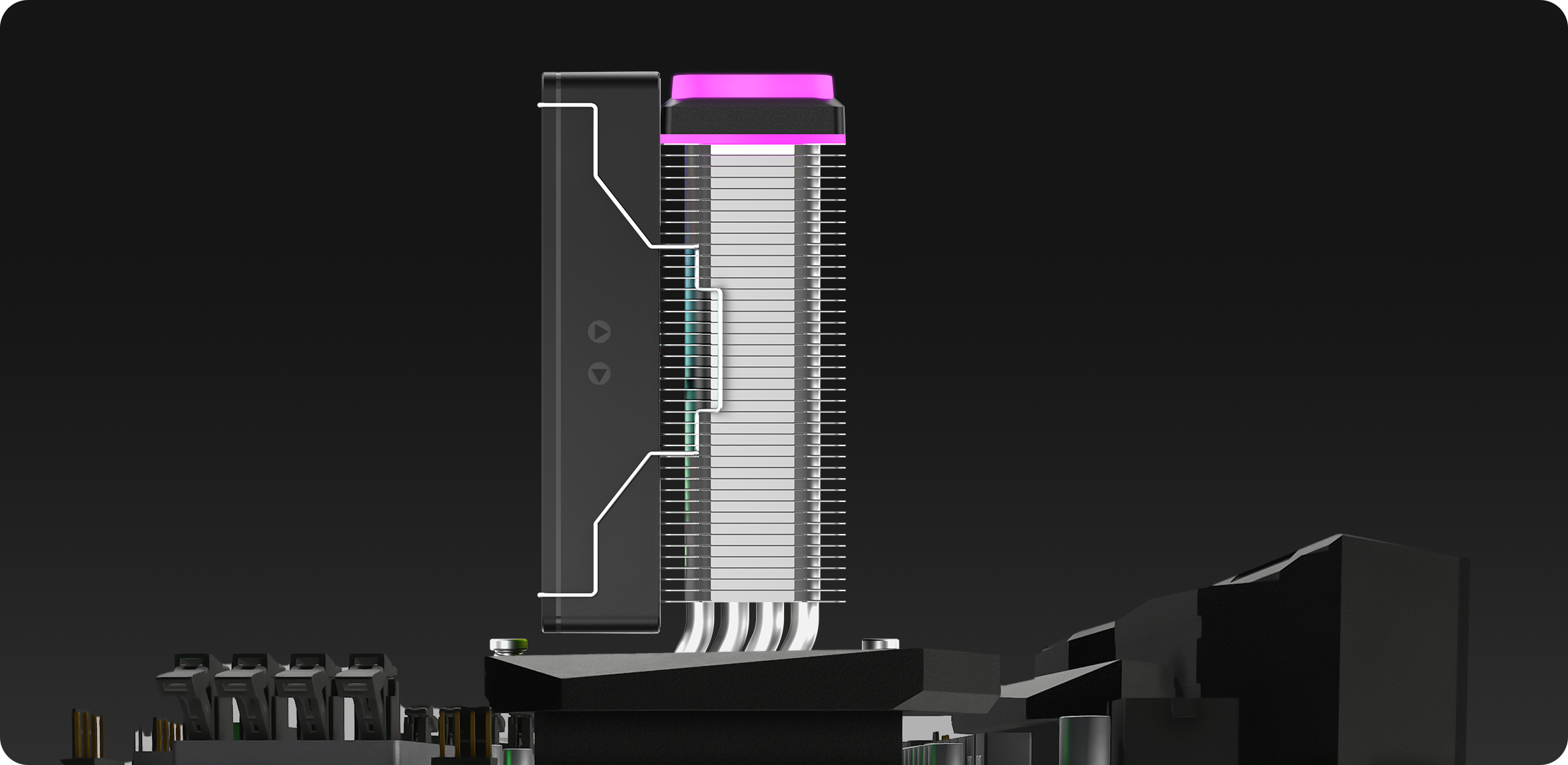 Hệ thống 4 heatpipe tiếp xúc trực tiếp với CPU giúp tản nhiệt đồng đều, tối ưu hiệu suất làm mát và giảm nhiệt độ CPU đáng kể.