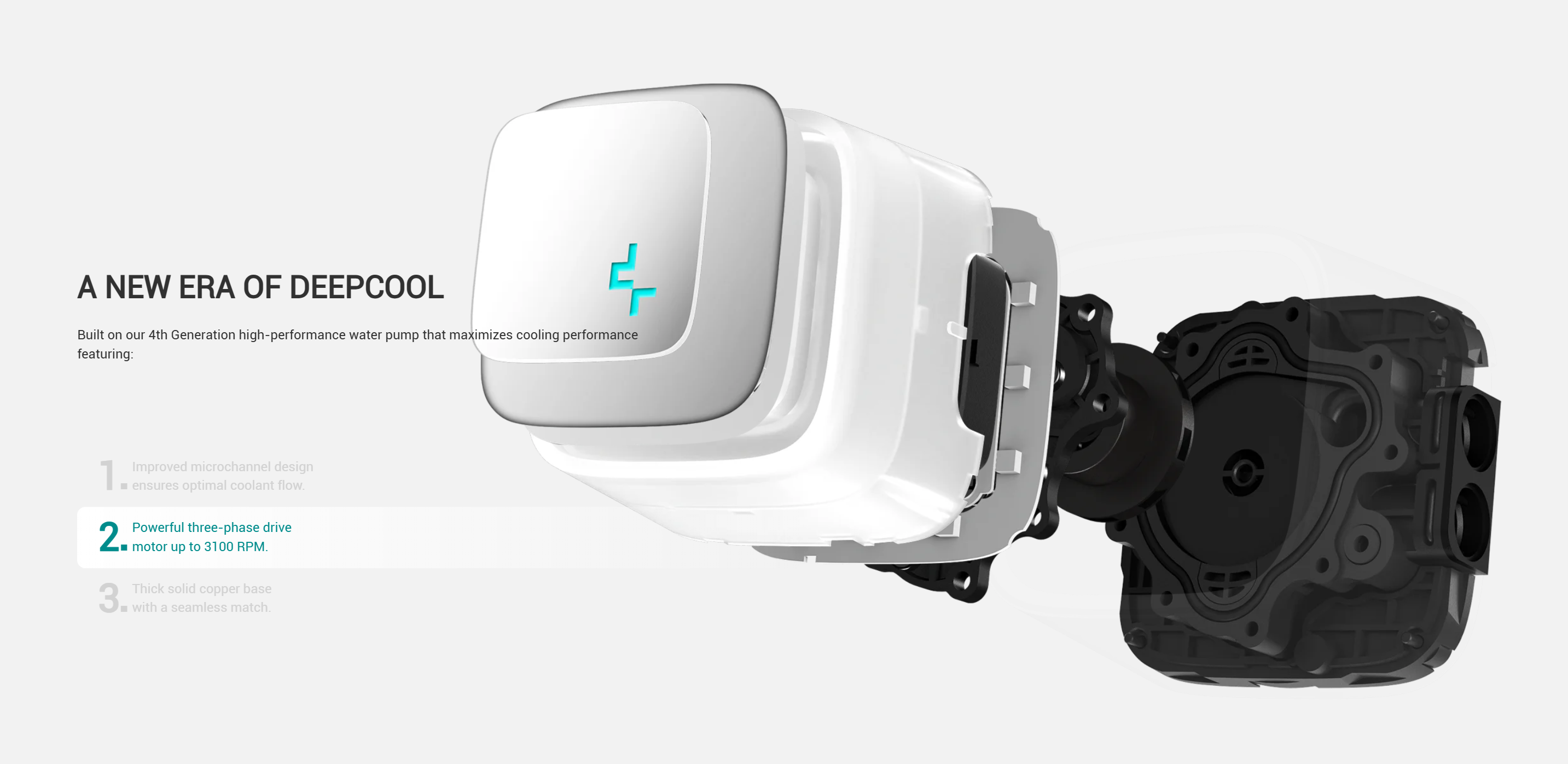 Thiết kế bơm tiên tiến: Bơm có tốc độ quay 3100 RPM, được kết nối qua đầu cắm 3-pin. Với độ ồn cực thấp chỉ 19 dB(A) và công suất tiêu thụ 5.64W, thiết kế này giúp tối ưu hóa hiệu quả làm mát và giảm thiểu tiếng ồn, mang lại trải nghiệm sử dụng êm ái.