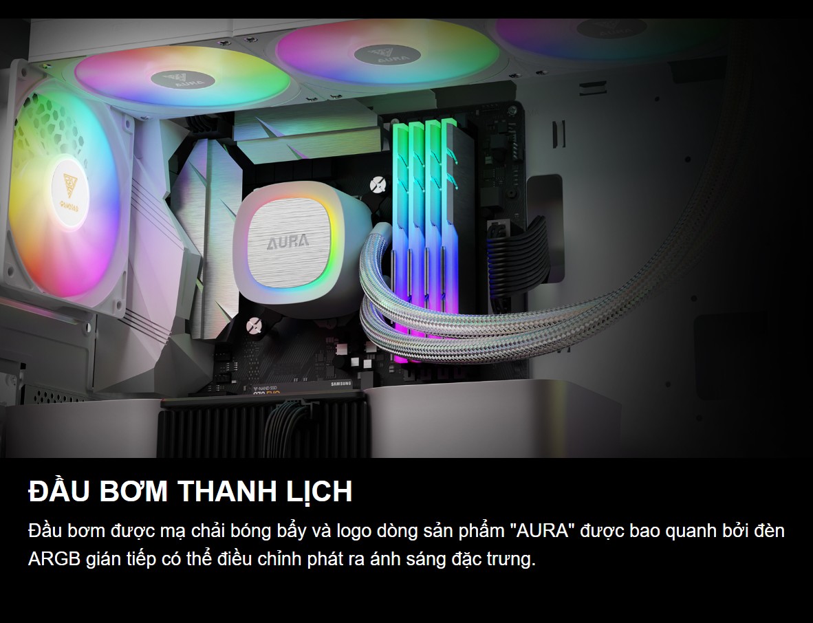 Tản nhiệt nước AIO GAMDIAS AURA GL360 V2 ARGB là sự kết hợp hoàn hảo giữa hiệu suất làm mát đỉnh cao, thiết kế thẩm mỹ và độ bền vượt trội. Đây là một khoản đầu tư thông minh để bảo vệ và tối ưu hóa hiệu năng cho bộ vi xử lý của bạn, đồng thời nâng tầm vẻ đẹp cho toàn bộ hệ thống máy tính.