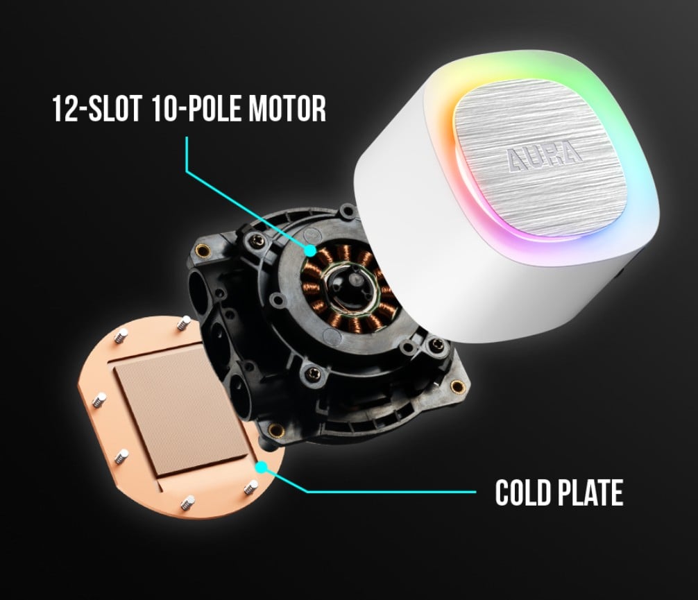 Cả ba quạt và máy bơm đều được trang bị hệ thống đèn LED ARGB rực rỡ, mang đến hiệu ứng ánh sáng tuyệt đẹp. Bạn có thể dễ dàng tùy chỉnh và đồng bộ hiệu ứng ánh sáng với toàn bộ hệ thống thông qua các phần mềm điều khiển của bo mạch chủ hàng đầu nhờ hỗ trợ cổng kết nối 5V 3-pin ARGB.