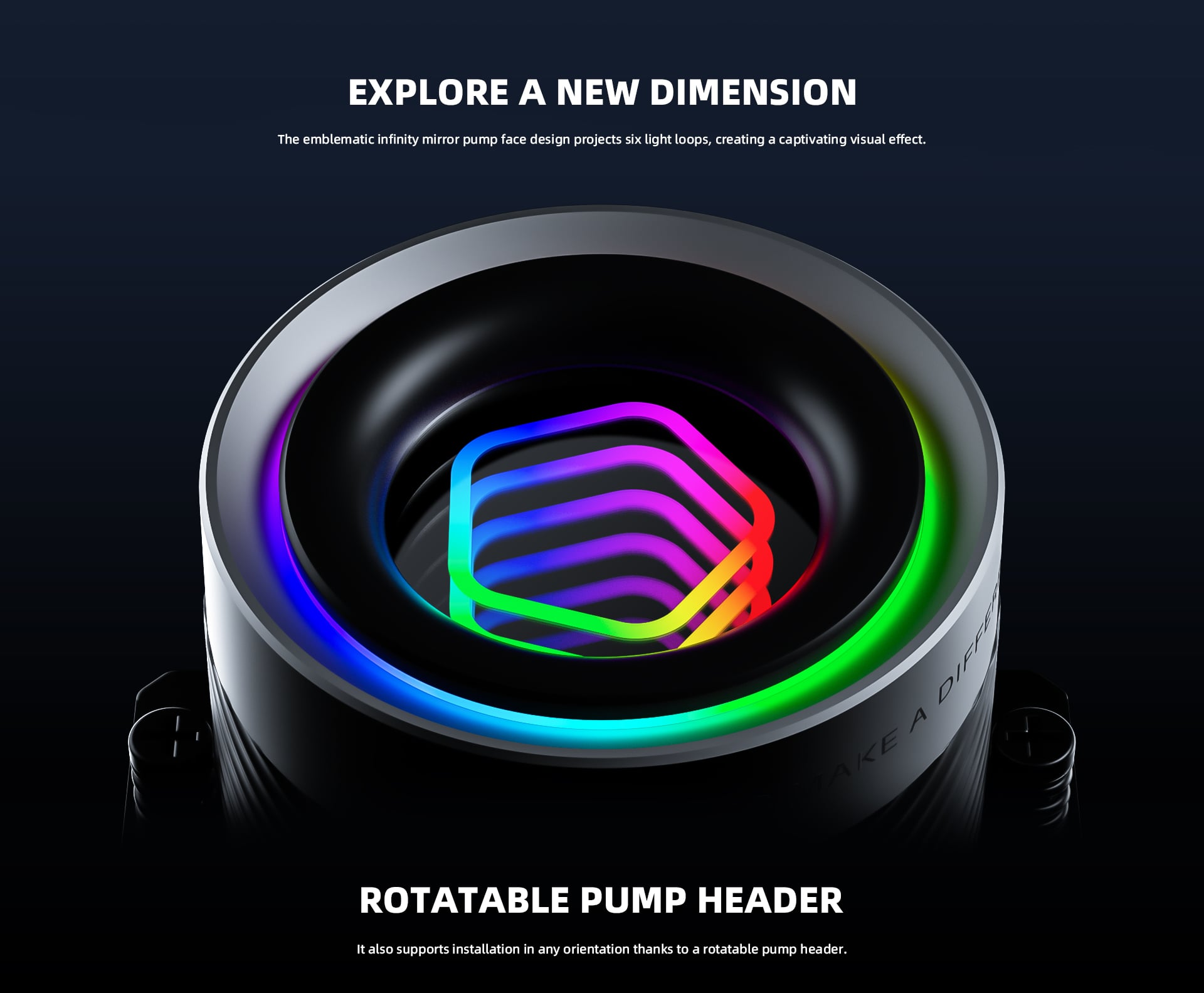 ID-COOLING FX240 INF là sự lựa chọn hoàn hảo cho những dàn PC muốn tối ưu hóa không gian lắp đặt mà không muốn đánh đổi về mặt thẩm mỹ. Với thiết kế Infinity Mirror (Gương vô cực) huyền ảo trên mặt Block và công suất giải nhiệt ấn tượng lên đến TDP 300W, FX240 INF không chỉ là một linh kiện làm mát mà còn là một món đồ trang sức cao cấp, biến khu vực trung tâm bộ máy của bạn thành một hố đen ánh sáng đầy mê hoặc.