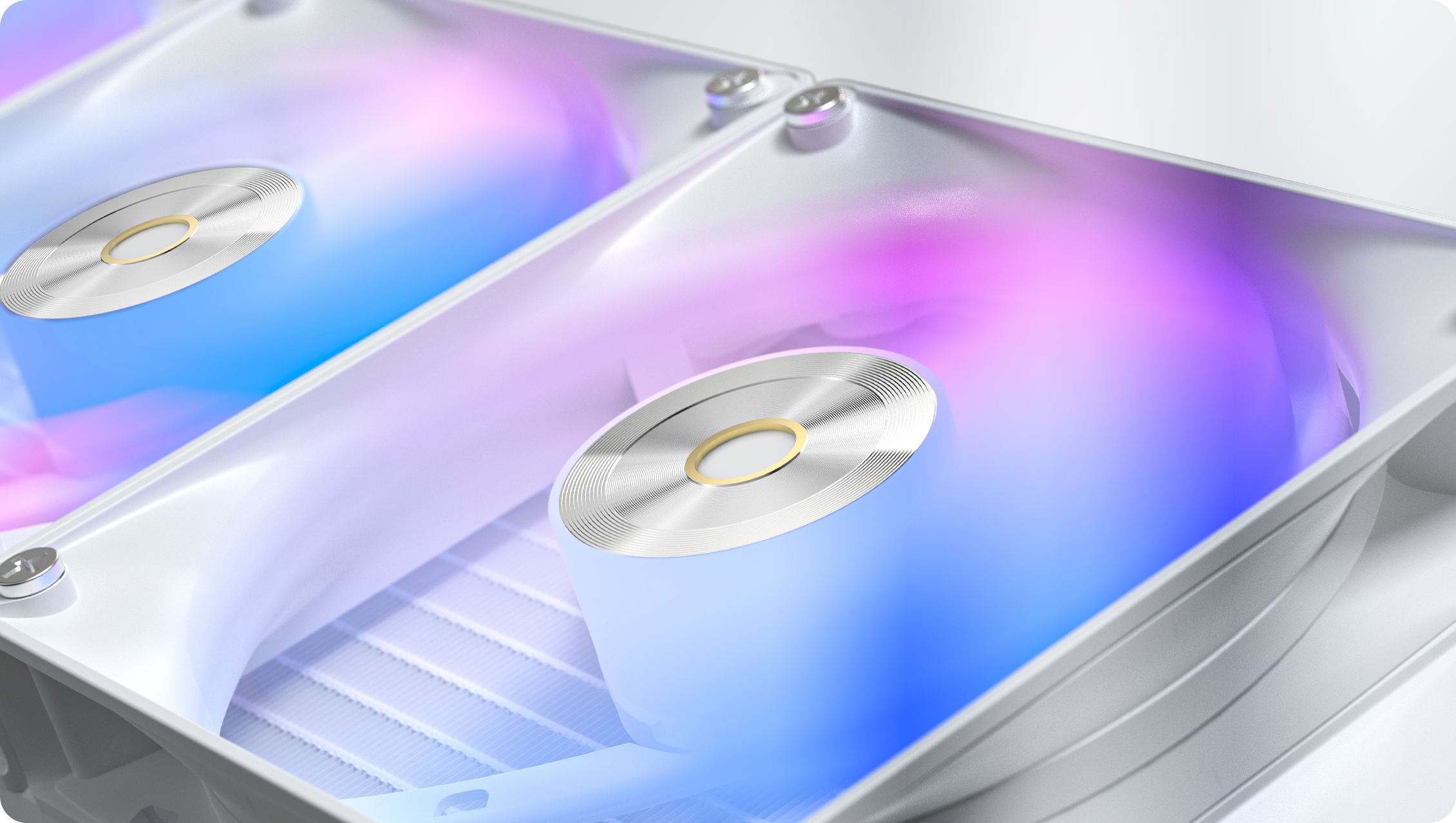 Ba quạt Hydraulic Bearing 120mm hoạt động ở tốc độ 500–2000 RPM, tạo luồng gió lên đến 73 CFM và áp suất tĩnh 4.3mmH₂O, tối ưu hiệu quả trao đổi nhiệt mà vẫn giữ độ ồn ≤29dB(A) – đảm bảo yên tĩnh cho không gian làm việc hoặc gaming.