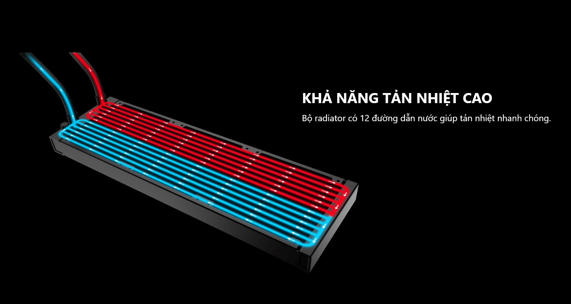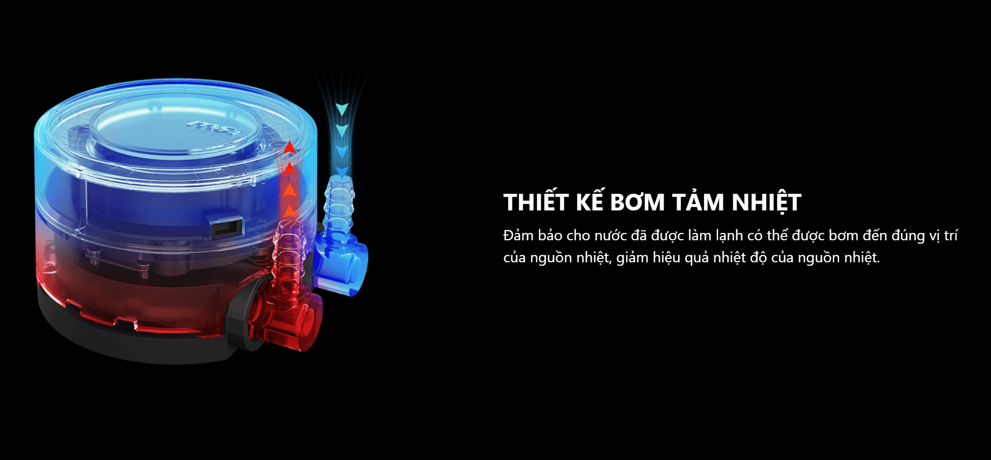 Máy bơm bền bỉ và hiệu suất cao: Máy bơm có tốc độ mạnh mẽ, được thiết kế để có tuổi thọ lên đến sử dụng. Mức độ ồn của bơm chỉ (trung bình), đảm bảo hệ thống hoạt động êm ái mà vẫn duy trì hiệu suất làm mát tối ưu.