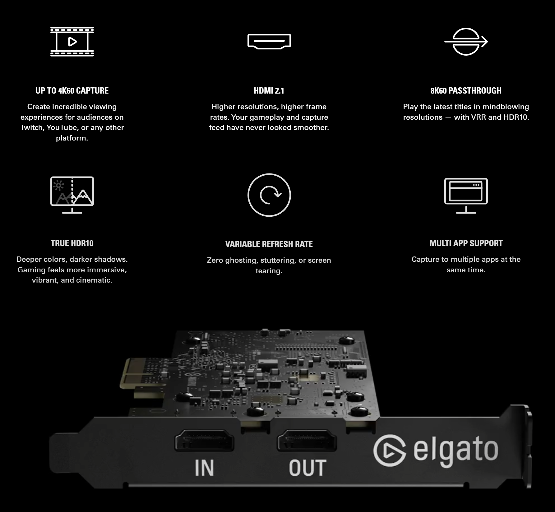 Elgato Game Capture 4K Pro là một card capture nội bộ mạnh mẽ, đáng tin cậy và hiệu quả, mang lại hiệu suất vượt trội cho cả việc chơi game và sáng tạo nội dung. Với khả năng passthrough 8K60 và ghi hình 4K60, đây là công cụ không thể thiếu cho những ai muốn nâng tầm trải nghiệm của mình.
