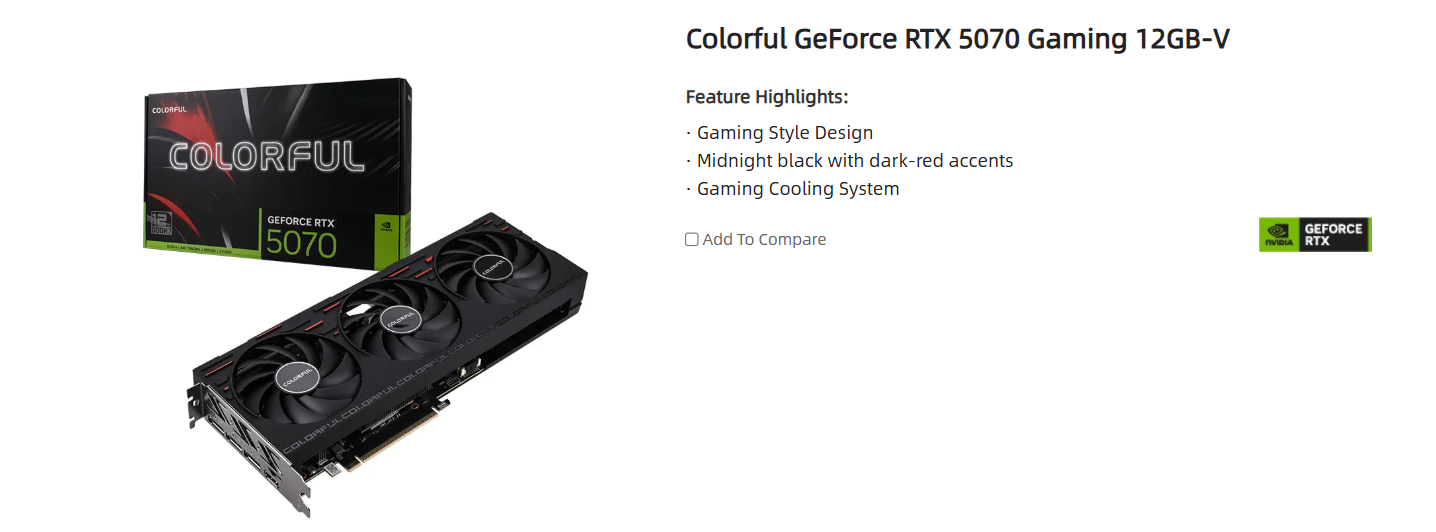 Model: Colorful GeForce RTX 5070 Gaming 12GB-V