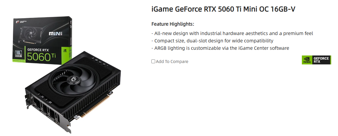 VGA Colorful iGame GeForce RTX 5060 Ti Mini OC 16GB-V