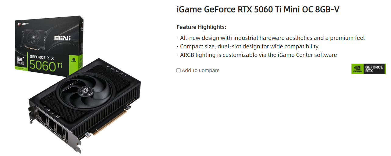 VGA Colorful iGame GeForce RTX 5060 Ti Mini OC 8GB-V