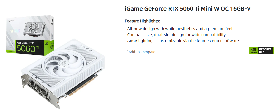 VGA Colorful iGame GeForce RTX 5060 Ti Mini W OC 16GB-V