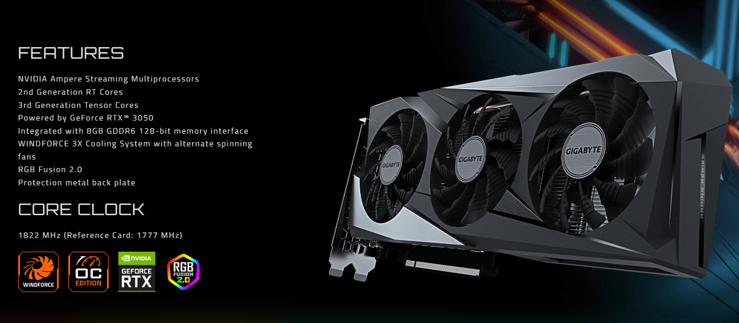 Model: GIGABYTE GeForce RTX 3050 GAMING OC 8G (GV-N3050GAMING-OC-8GD)
