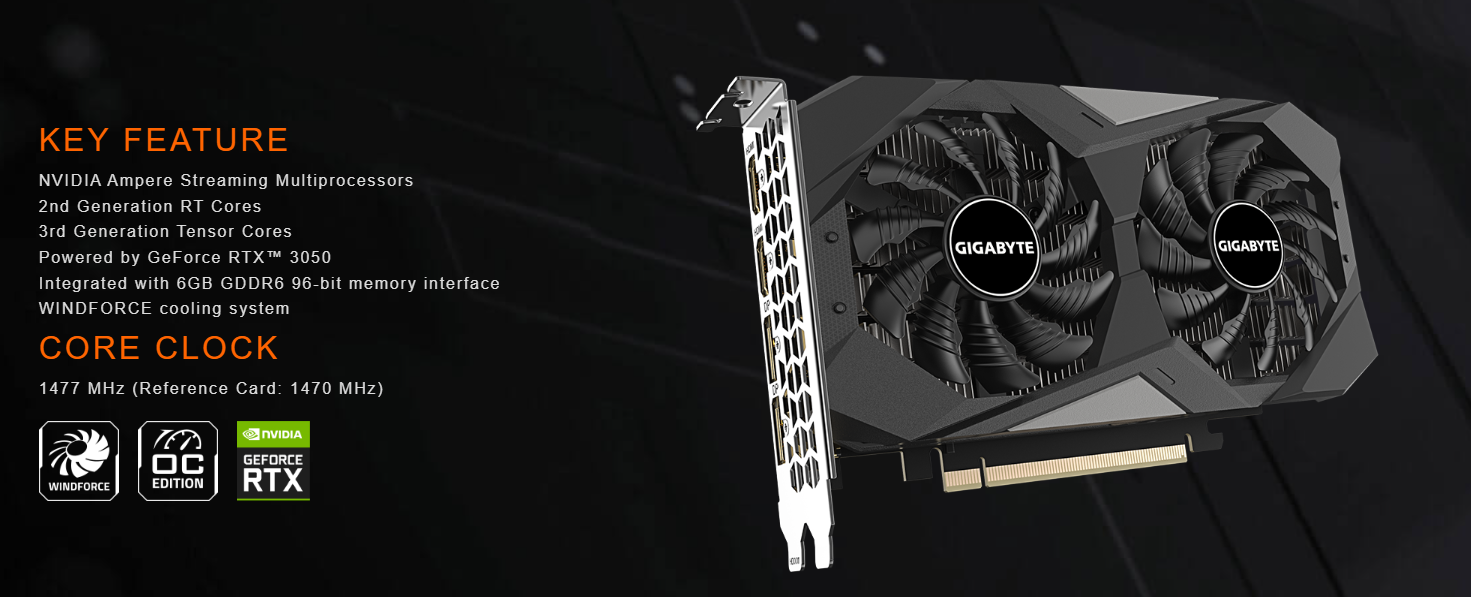 Model: GIGABYTE GeForce RTX 3050 WINDFORCE OC 6G (GV-N3050WF2OC-6GD)