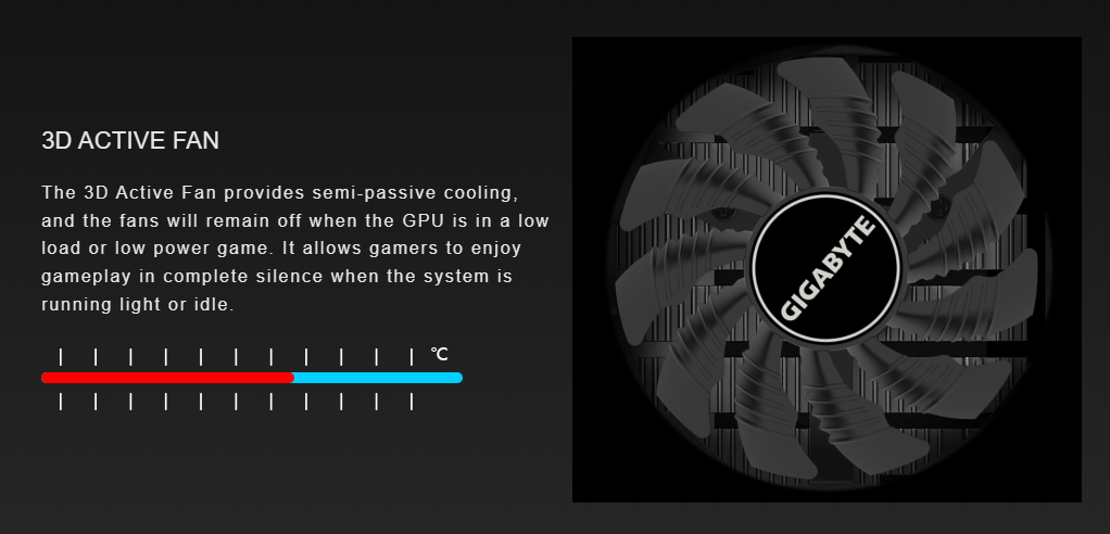 VGA RTX 3050 WINDFORCE OC trang bị hệ thống làm mát WINDFORCE 2X của GIGABYTE (2 quạt), với công nghệ quay luân phiên (Alternate Spinning) giúp giảm nhiễu loạn luồng khí và tối ưu hóa tản nhiệt. Hệ thống này đảm bảo khả năng tản nhiệt hiệu quả, giữ cho nhiệt độ thấp để duy trì hiệu suất OC ổn định và độ bền bỉ đáng tin cậy.